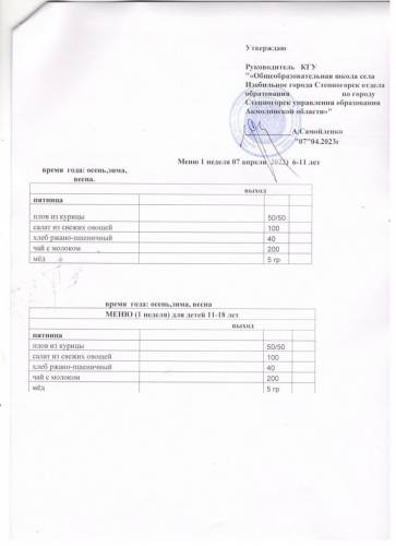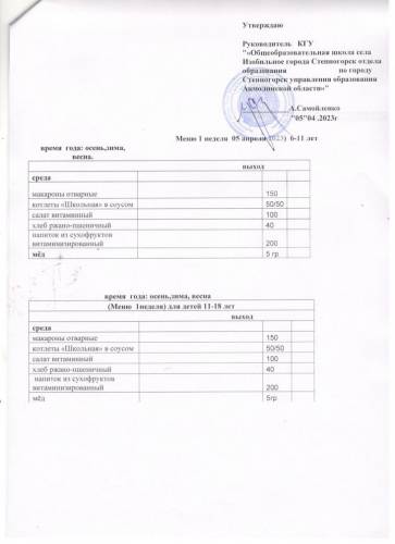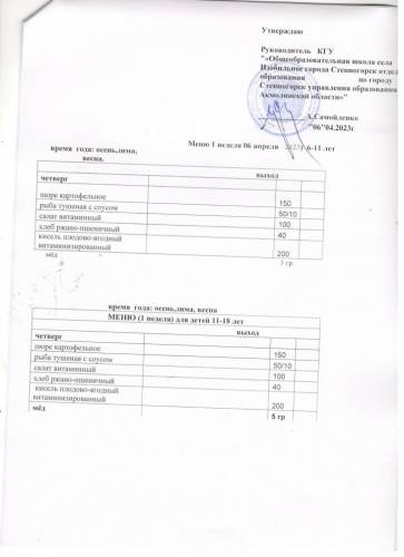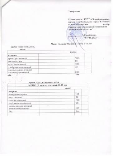меню 1 неделя апрель м-ц